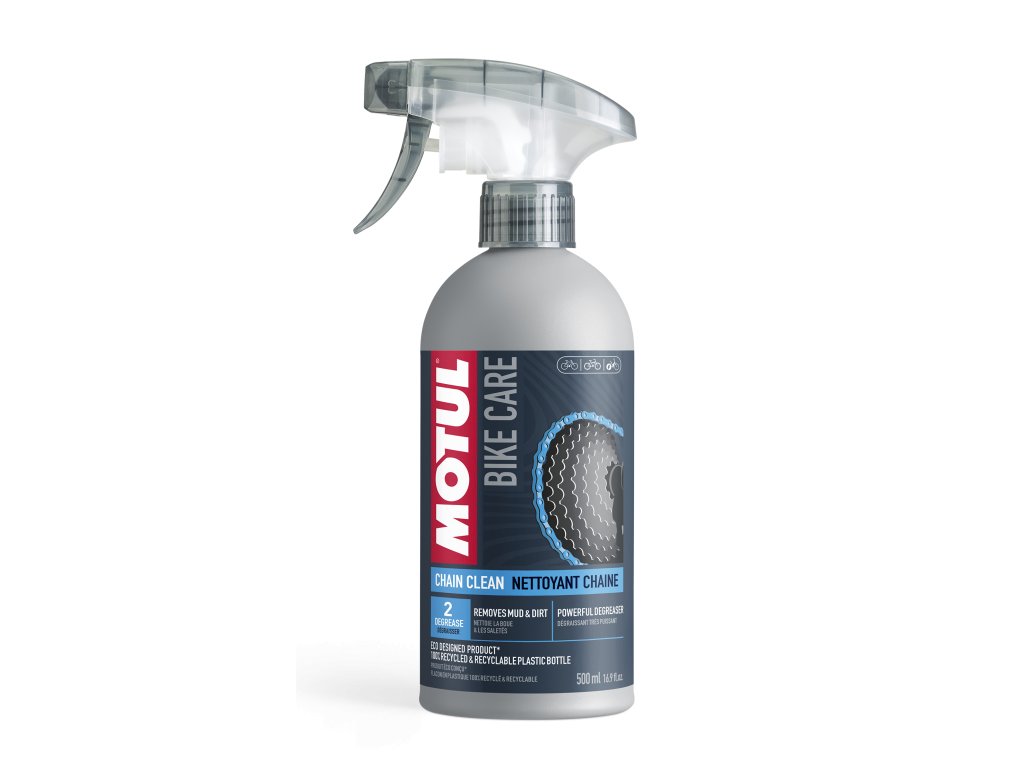 MOTUL Chain Clean je vysoce účinný čistič řetězu, kazety a pastorků, který rychle odstraňuje mastnotu a nečistoty. Zároveň chrání kovové části proti oxidaci a je šetrný k hliníku i dalším materiálům. Vhodný pro všechna kola včetně elektrokol, navíc biologicky odbouratelný.